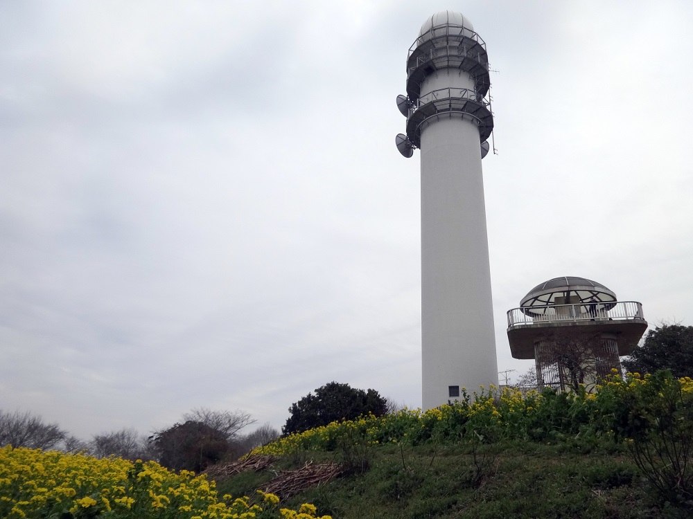 12:25 雨量計測塔&菜の花畑の広場(休憩約20分)