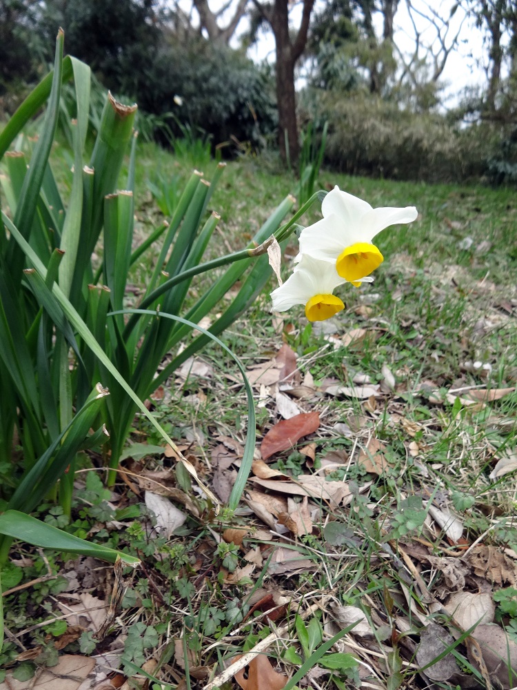 菜の花畑の広場の手前にぽつぽつと水仙が咲いていました。